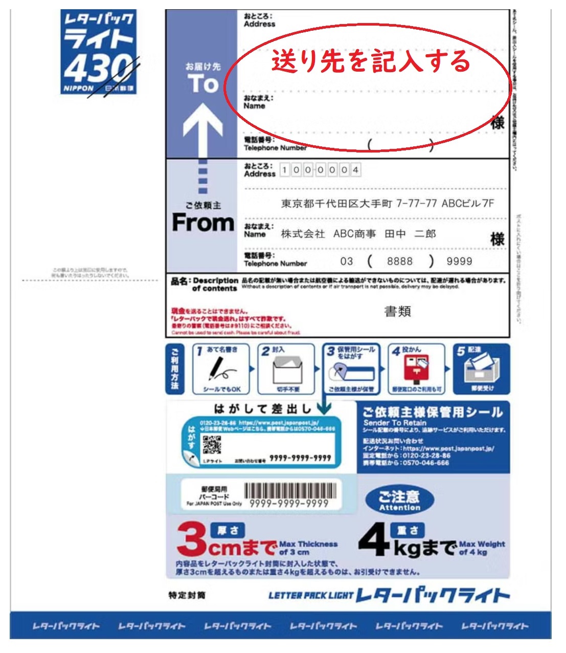 その後、角2号以上の封書で「レターパック」(半分に折って)を同封し送ってもらってください。